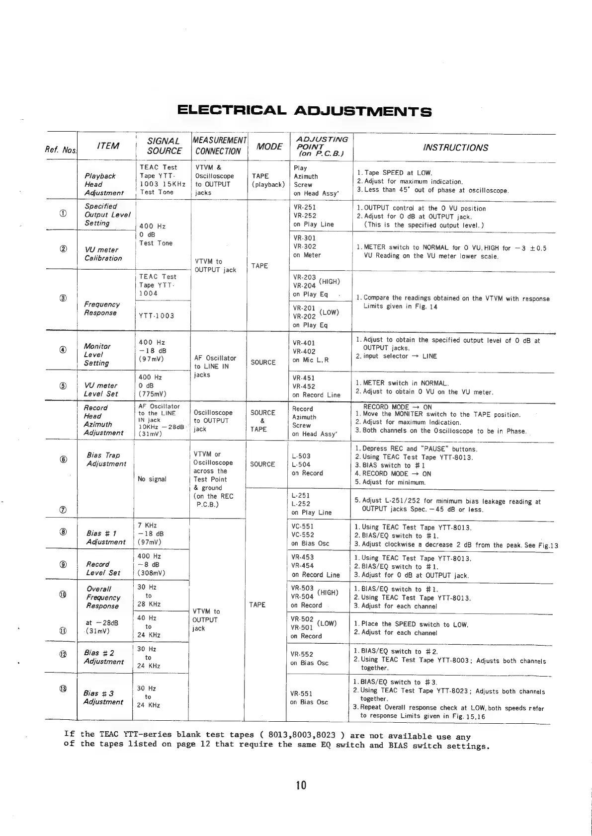 Teac A-7300 2T - Electrical Adjustment Procedures