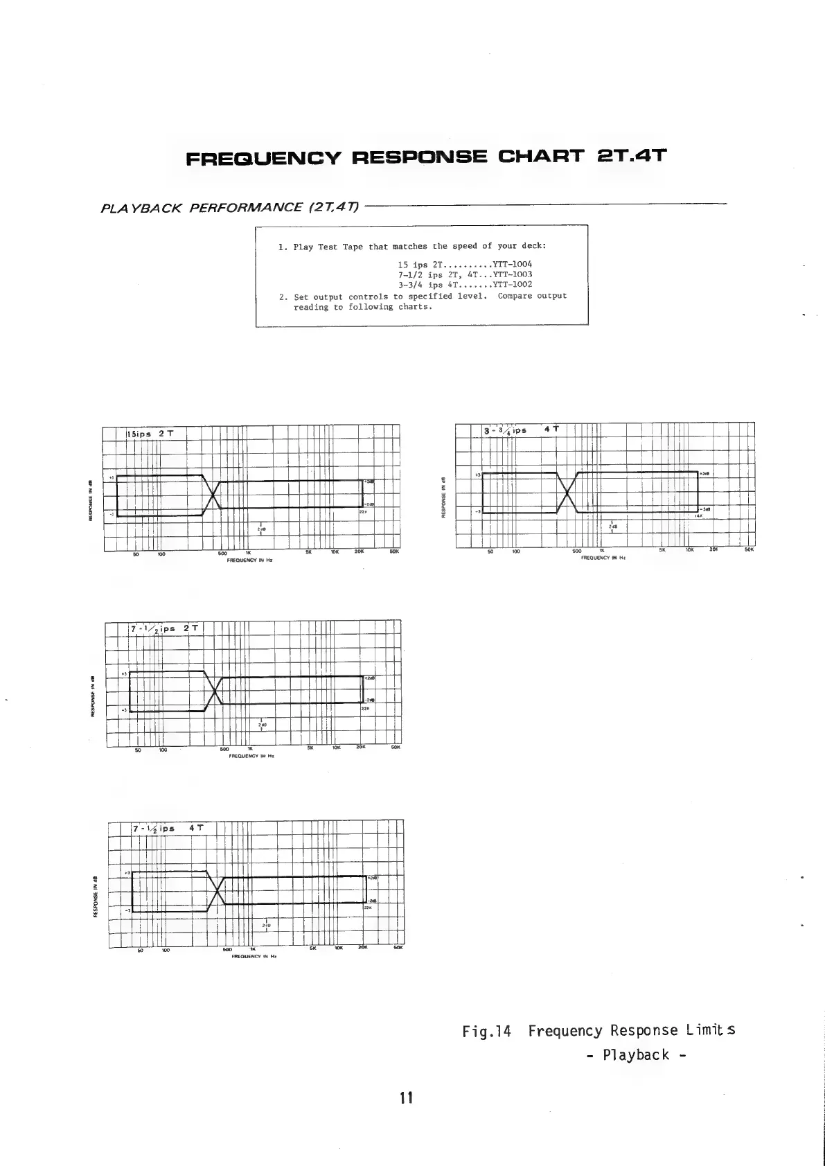 Teac A-7300 2T - Frequency Response Charts; Playback Performance Charts (2 T, 4 T)