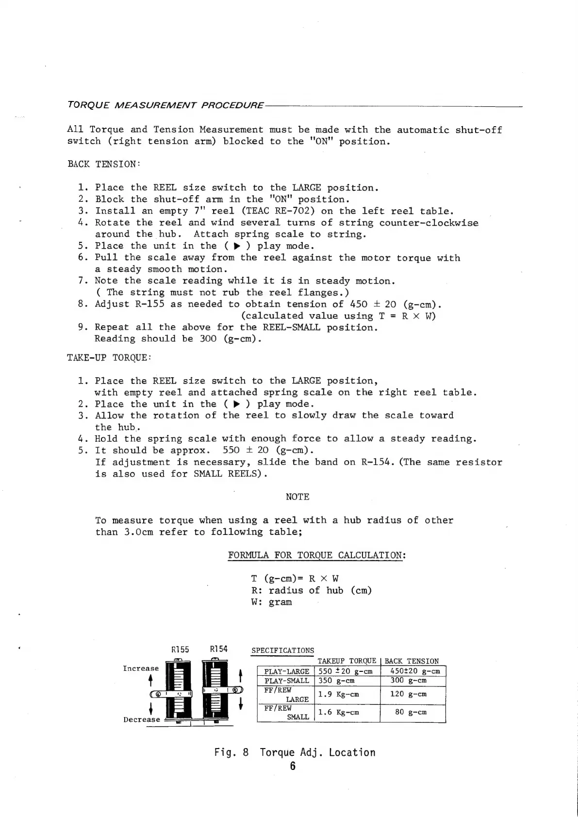 Teac A-7300 2T - Torque Measurement and Adjustment