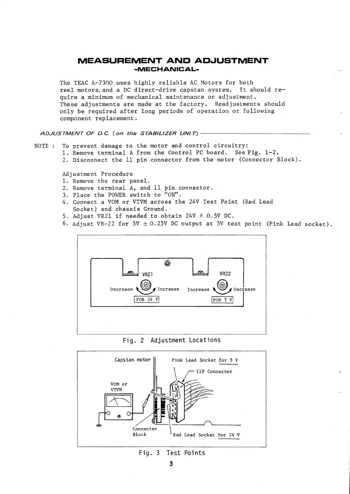 Teac A-7300 - MEASUREMENT AND ADJUSTMENT; MECHANICAL ADJUSTMENTS; ADJUSTMENT OF D.C. (on the STABILIZER UNIT)