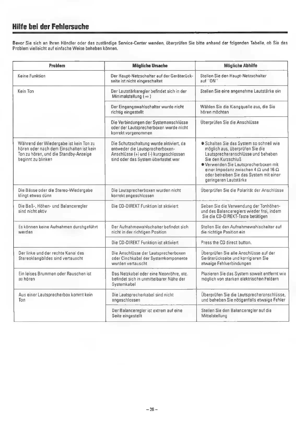 Fehlersuche