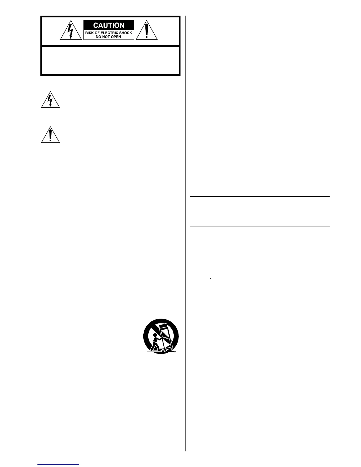 CAUTION: TO REDUCE THE RISK OF ELECTRIC SHOCK, DO NOT