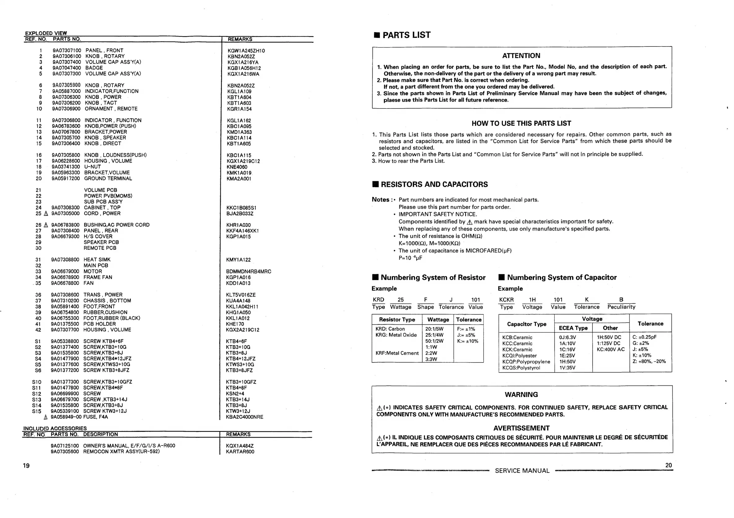 Teac A-R600 - Parts List; How to Use This Parts List; Resistors and Capacitors