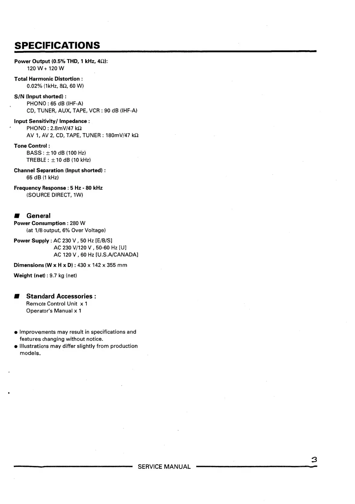 Teac A-R600 - Specifications; General Specifications; Standard Accessories