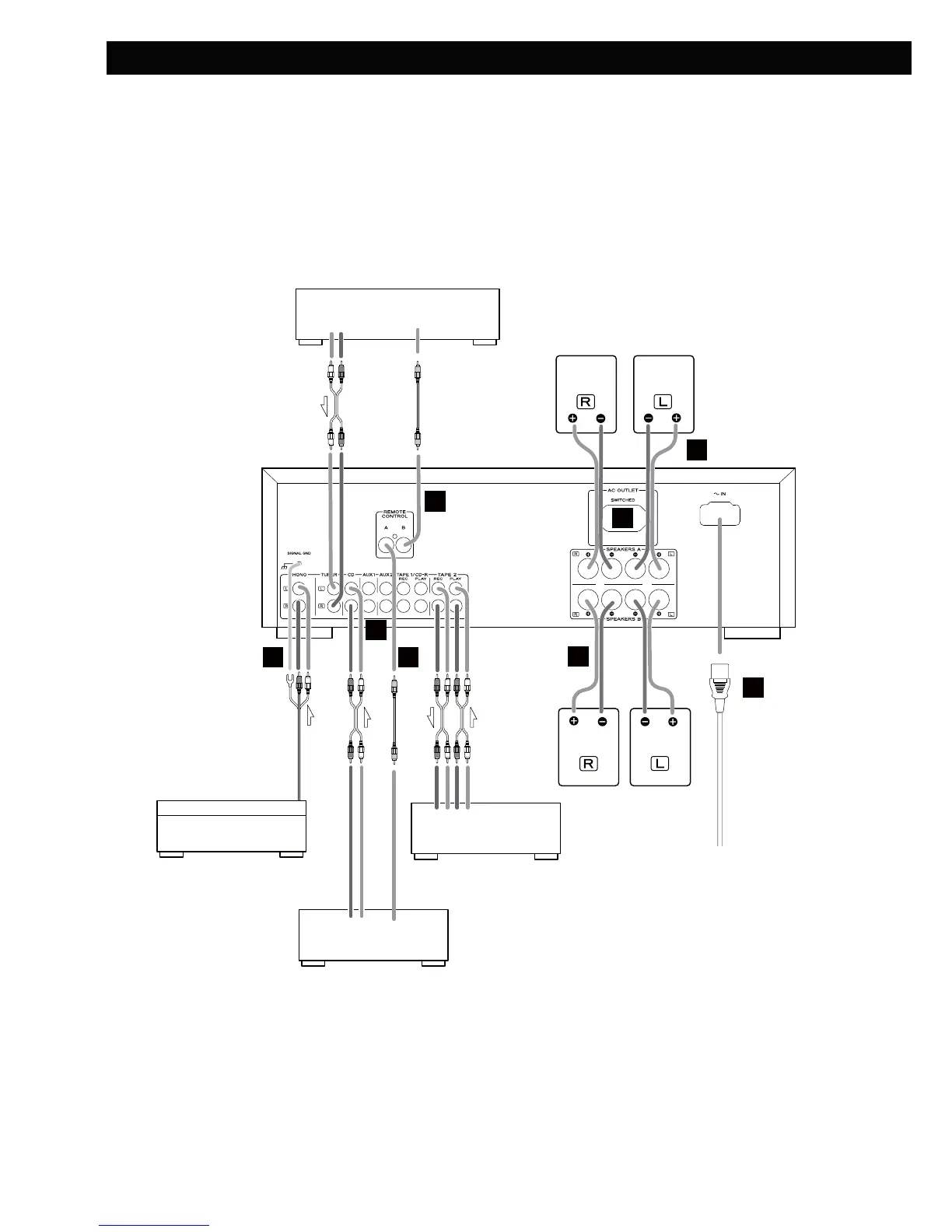 < Coupez l’alimentation de tous les appareils avant d’effectuer les raccordements.