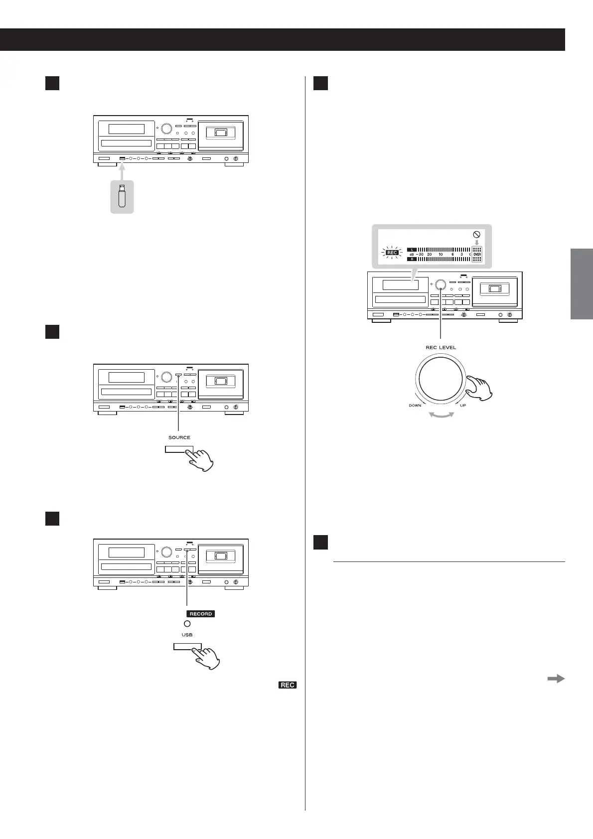 Press the RECORD USB button to start recording standby.