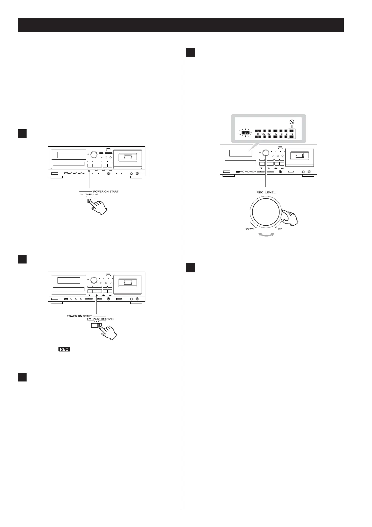 Use the REC LEVEL knob to adjust the recording level so that the