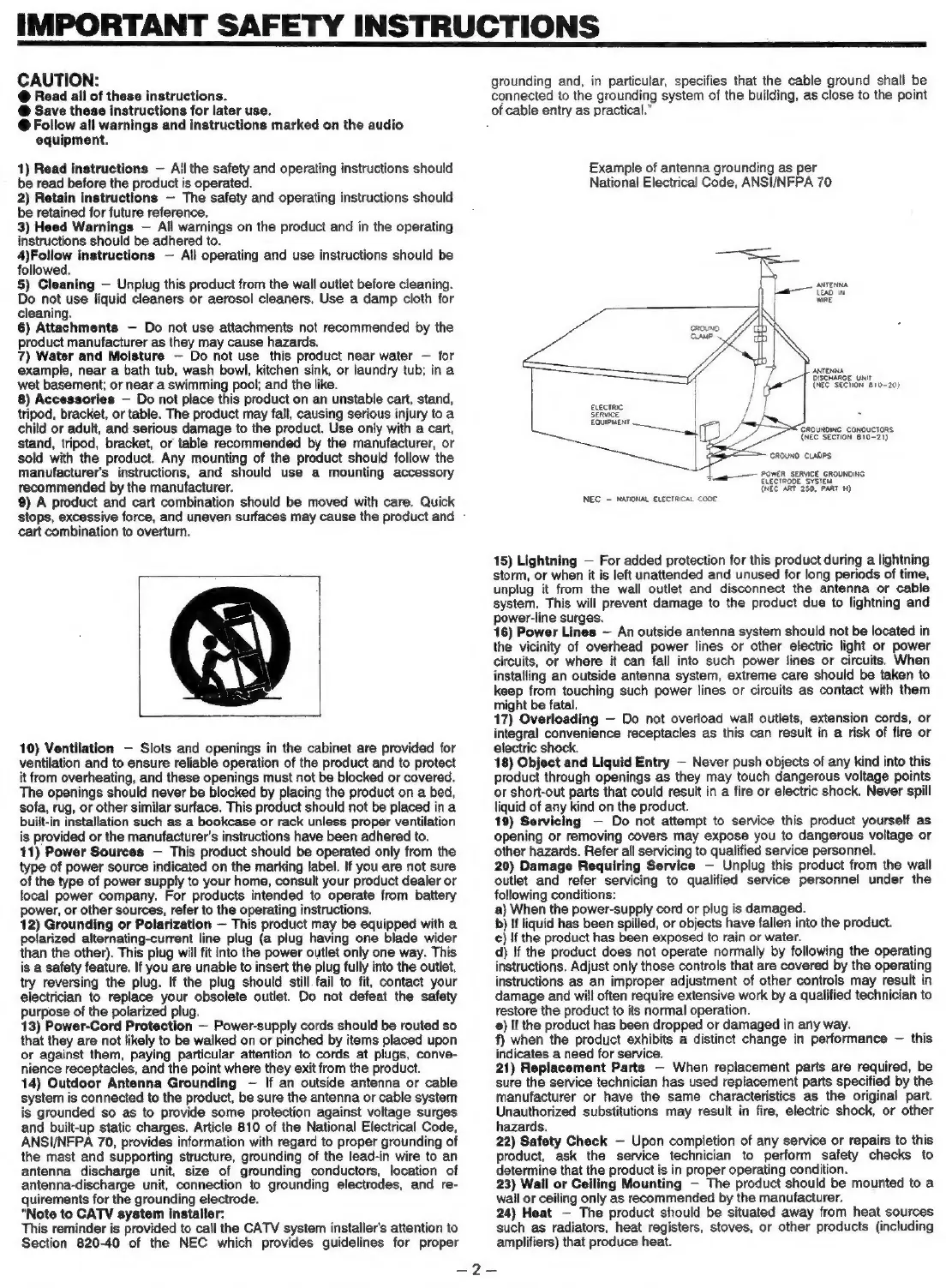 Teac AG-360 - IMPORTANT SAFETY INSTRUCTIONS; General Operation Safety; Equipment Handling and Environment; Electrical Safety and Protection