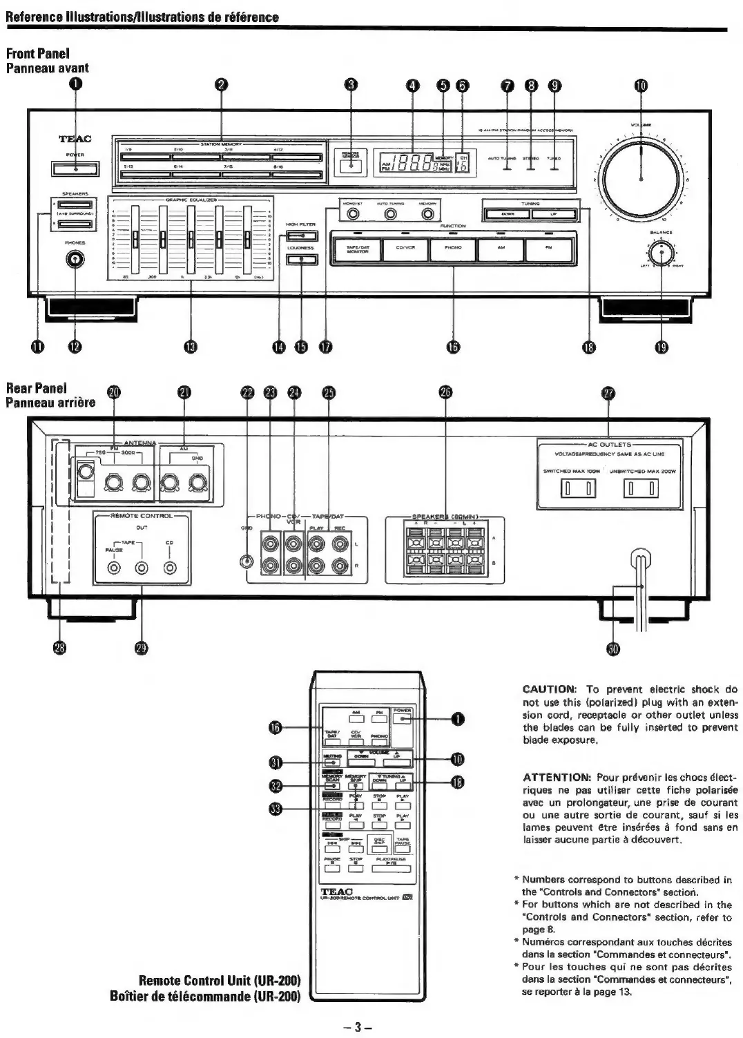 Teac AG-550 - Component Identification and Layout; Front Panel Controls Overview; Rear Panel Connections Overview; Remote Control Unit Layout