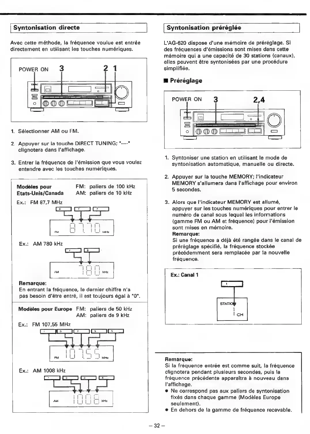 Teac AG-620 - Syntonisation Directe; Syntonisation Préréglée