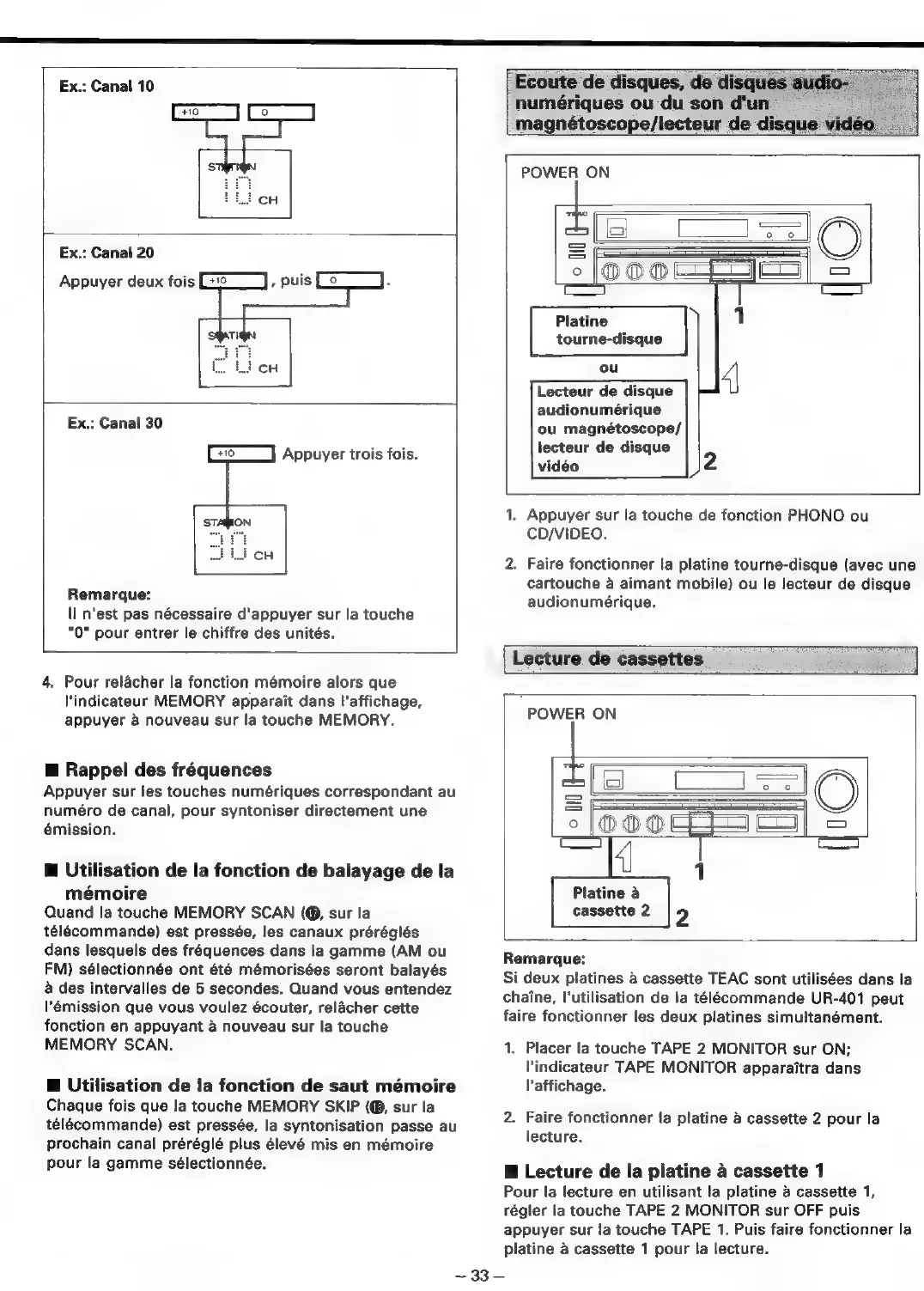 Teac AG-620 - Ecoute de Disques, de Disques; Lecture de Cassettes