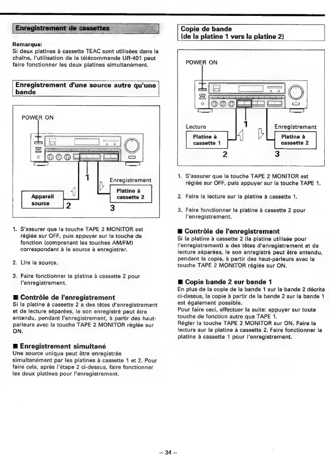 Teac AG-620 - Enregistrement Dune Source Autre; Copie de Bande (de la Platine 1 Vers la Platine 2)