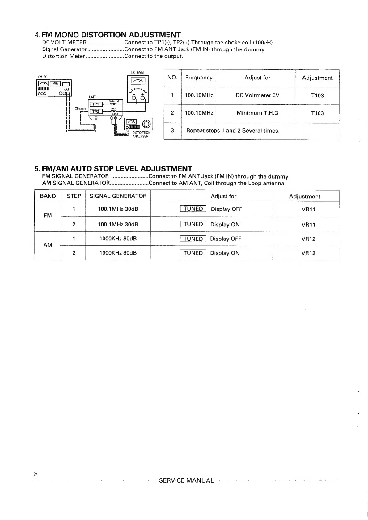 Teac AG-680 - FM Mono Distortion Adjustment; FM;AM Auto Stop Level Adjustment