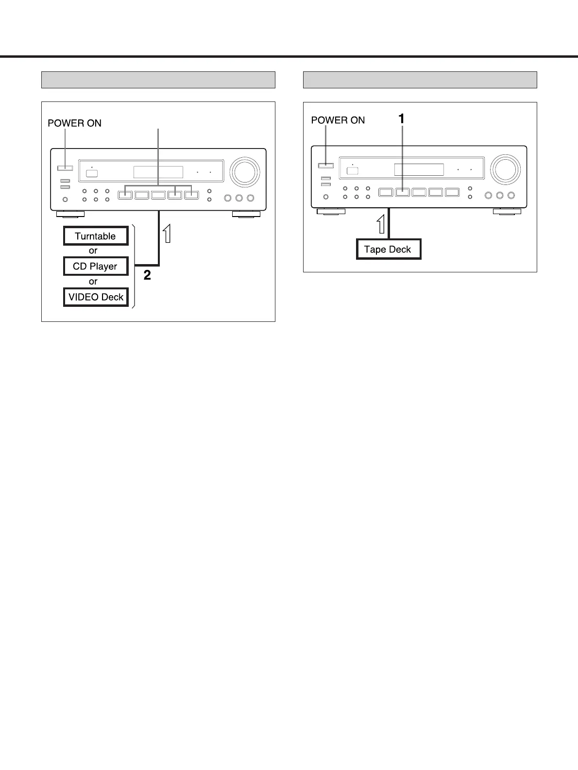 1. Press the CD, PHONO or VIDEO/AUX button.