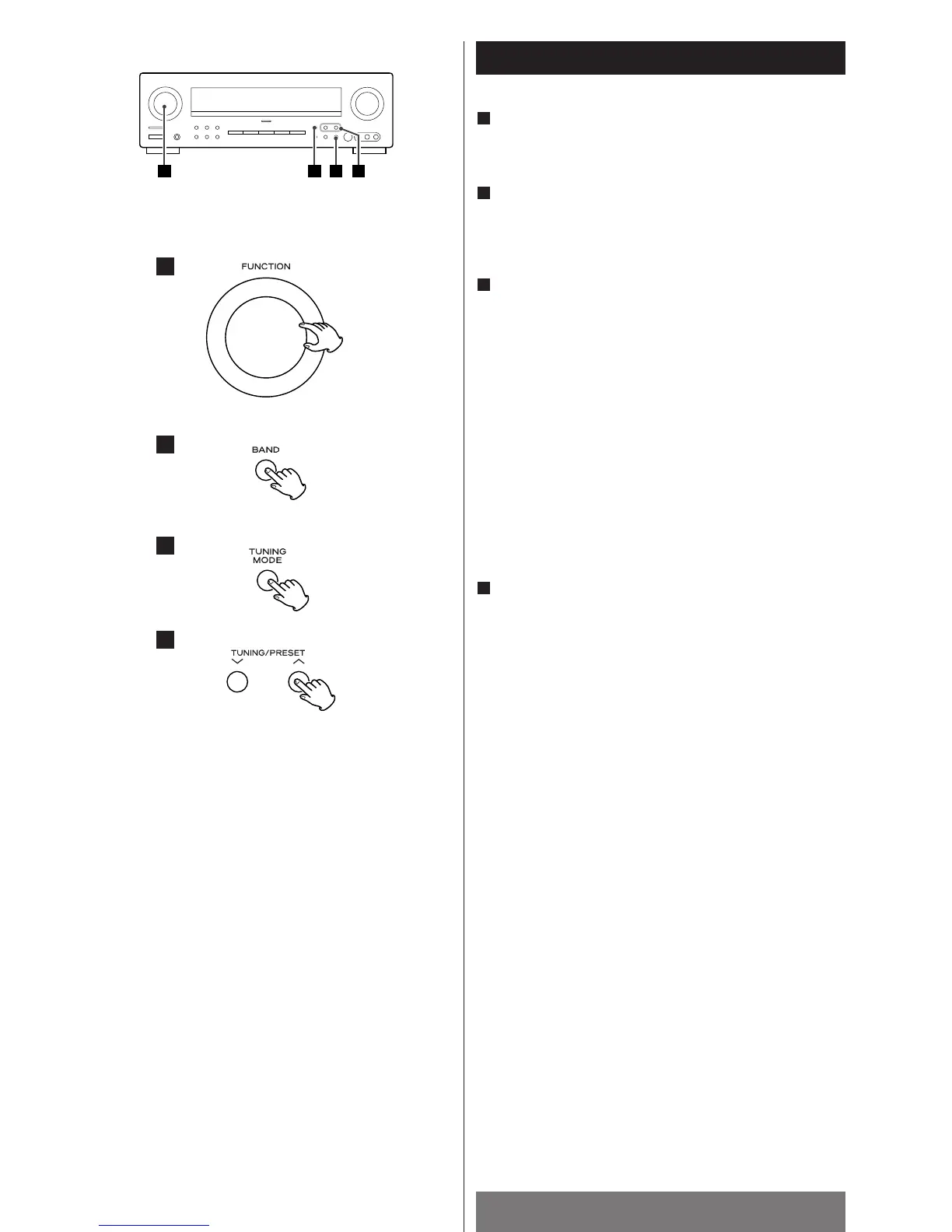 In the Manual tuning mode, hold down the TUNING/PRESET