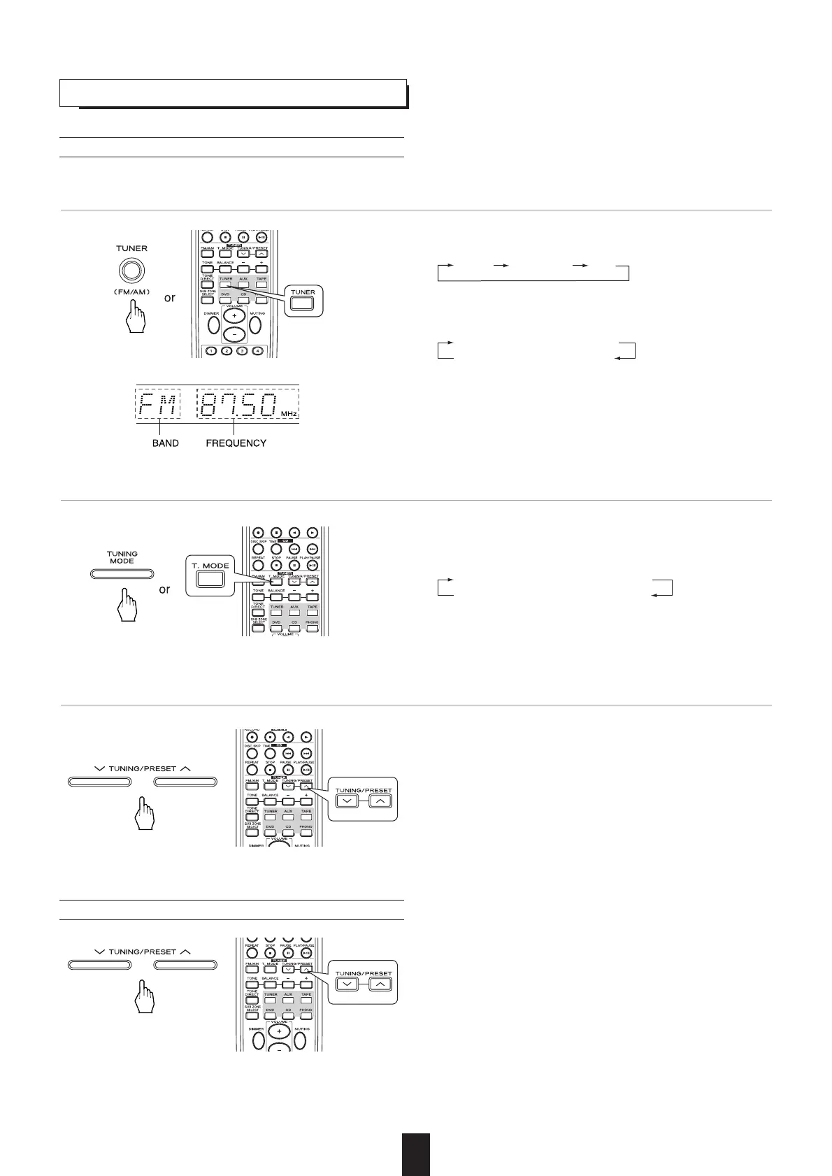 3. Press the TUNING/PRESET UP (°) or DOWN (‡) button for more than 0.5 second.
