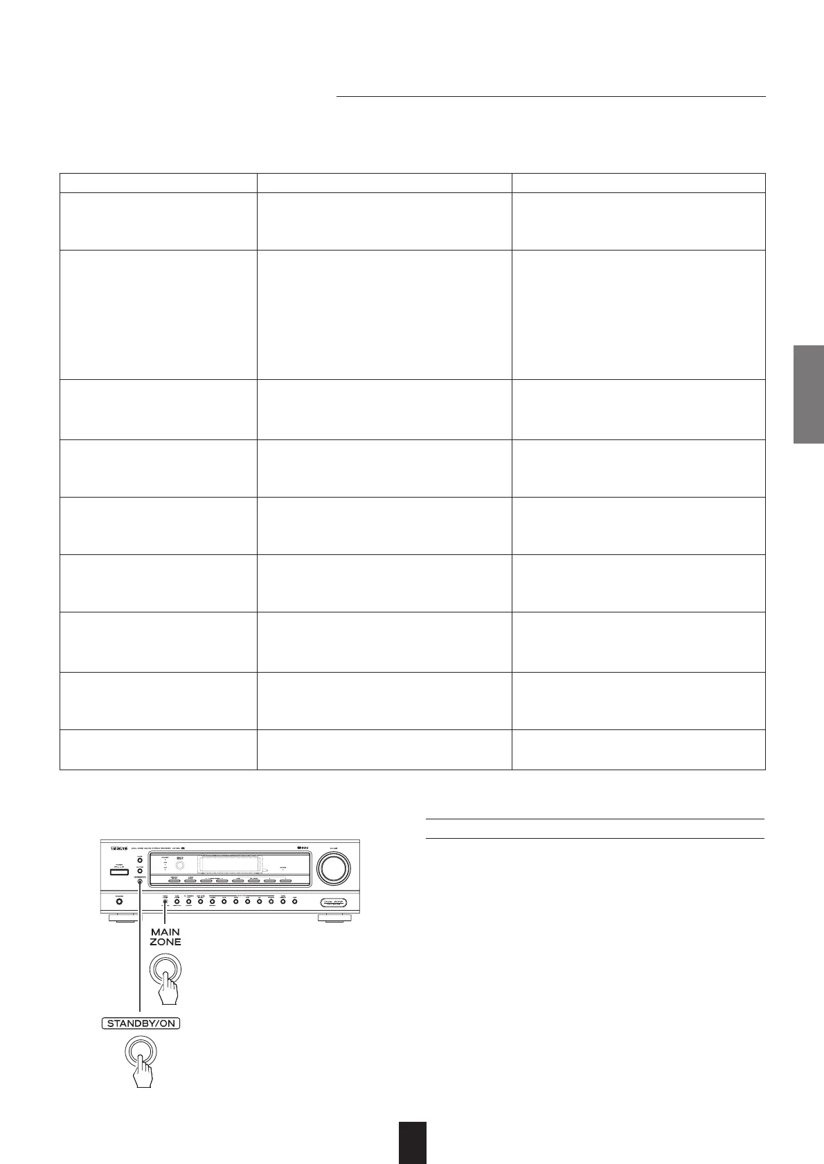 If a fault occurs, run through the table below before taking your receiver for repair.