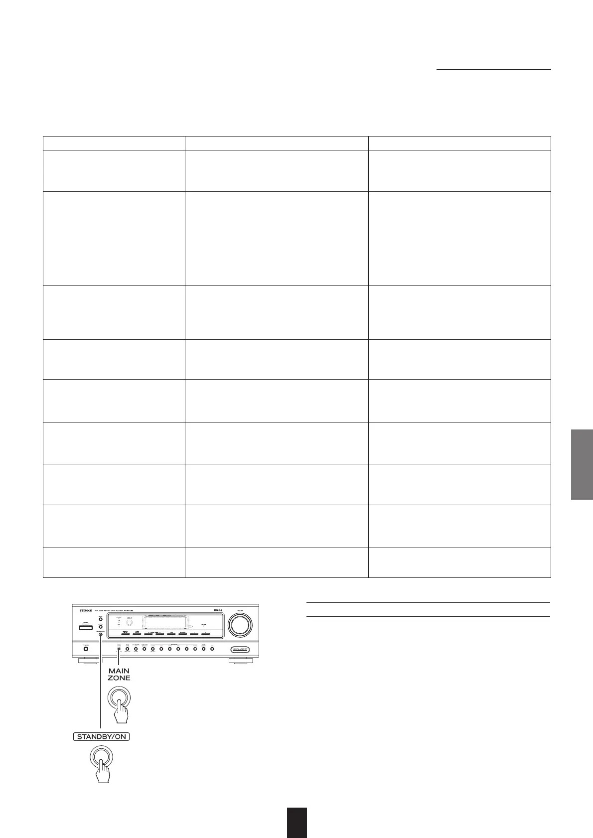 Si ocurre un problema, lea la tabla a continuación antes de llevar su receptor para reparación.