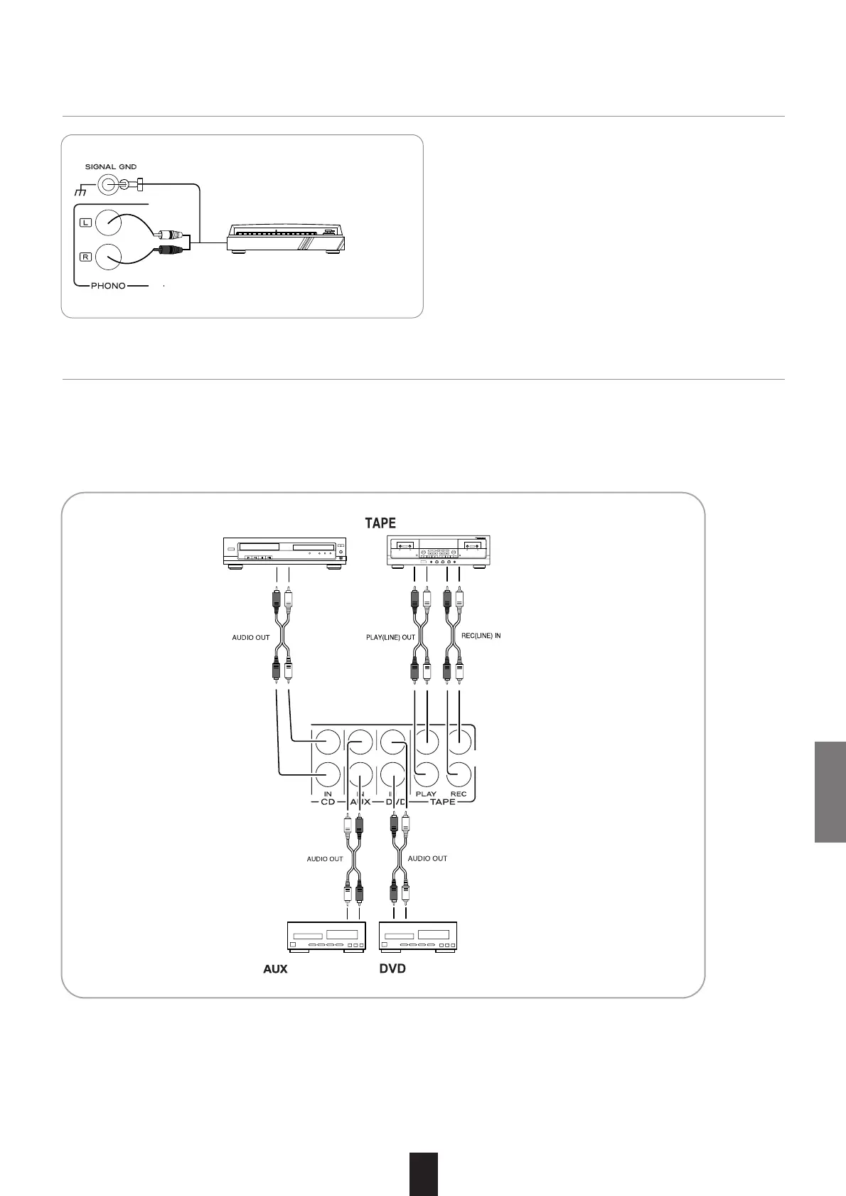 • Die Buchse TAPE PLAY/REC können mit Tonaufnahmegeräten, wie Kassettendeck, MD-Rekorder usw., verbunden werden.