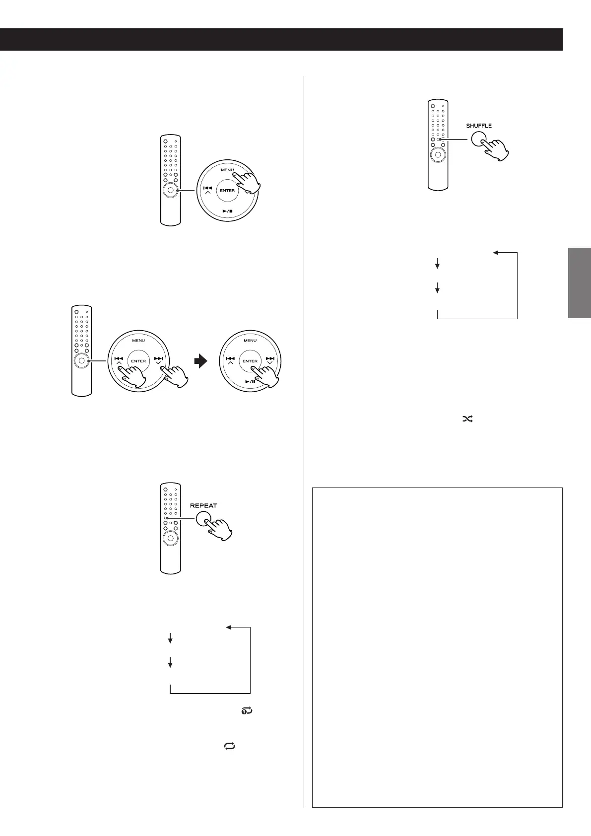Each time the SHUFFLE button is pressed, the shuffle mode