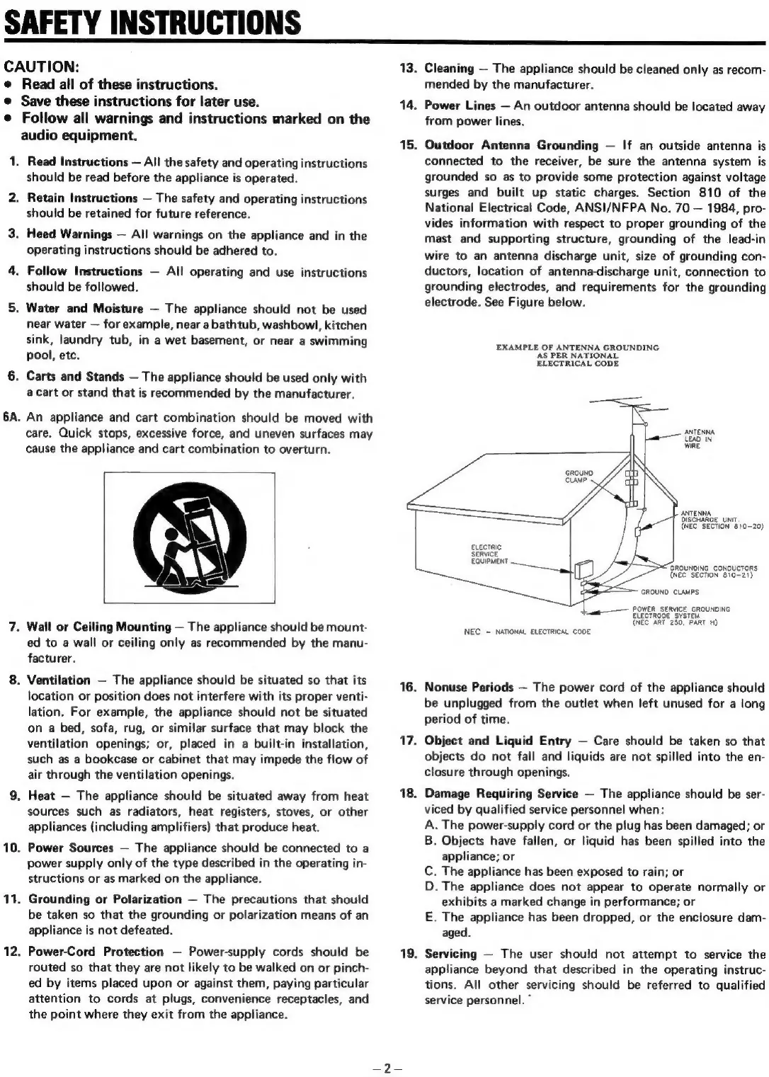 Teac AG-V1200 - Safety Instructions; General Safety Precautions; Electrical Safety and Grounding; Service and Damage Handling