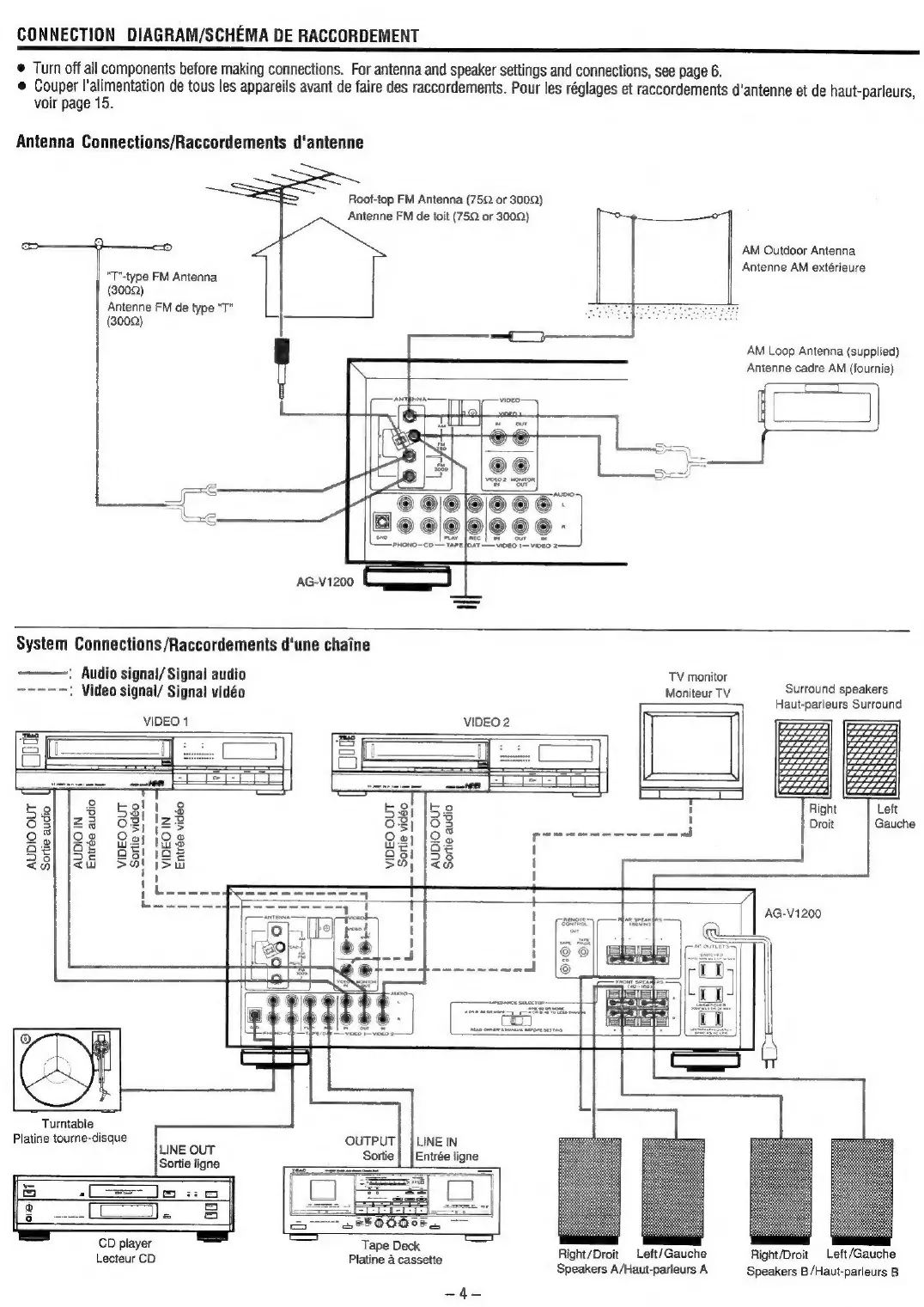 Teac AG-V1200 - Connection Diagram; Antenna Connections; System Connections