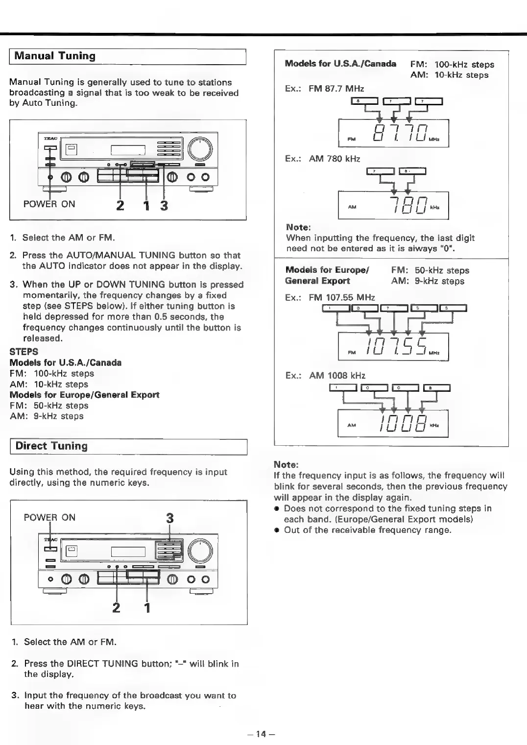Teac AG-V2050 - Direct Tuning; Manual Tuning