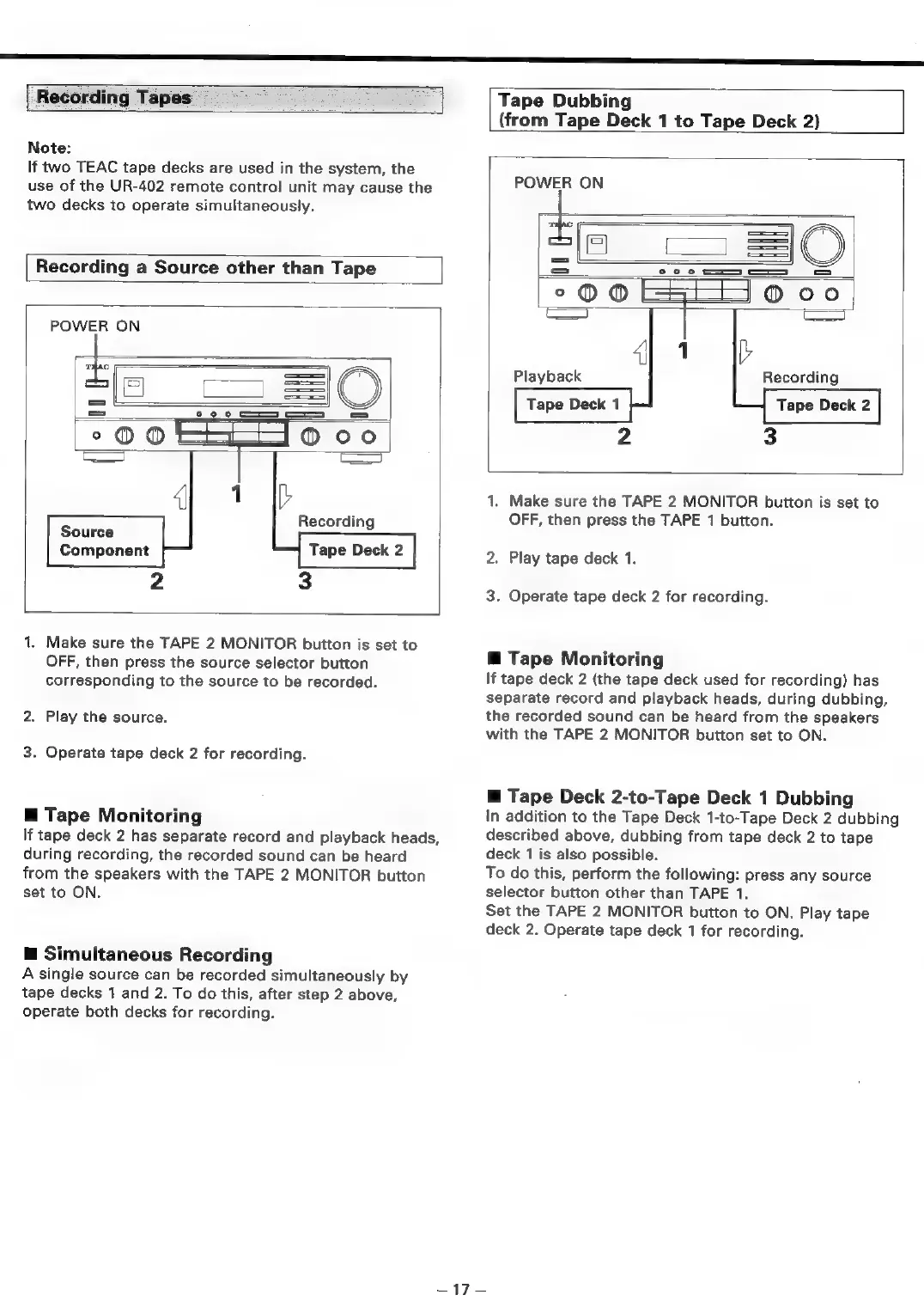 Teac AG-V2050 - Recording a Source Other than Tape; Recording Tapes; Tape Dubbing