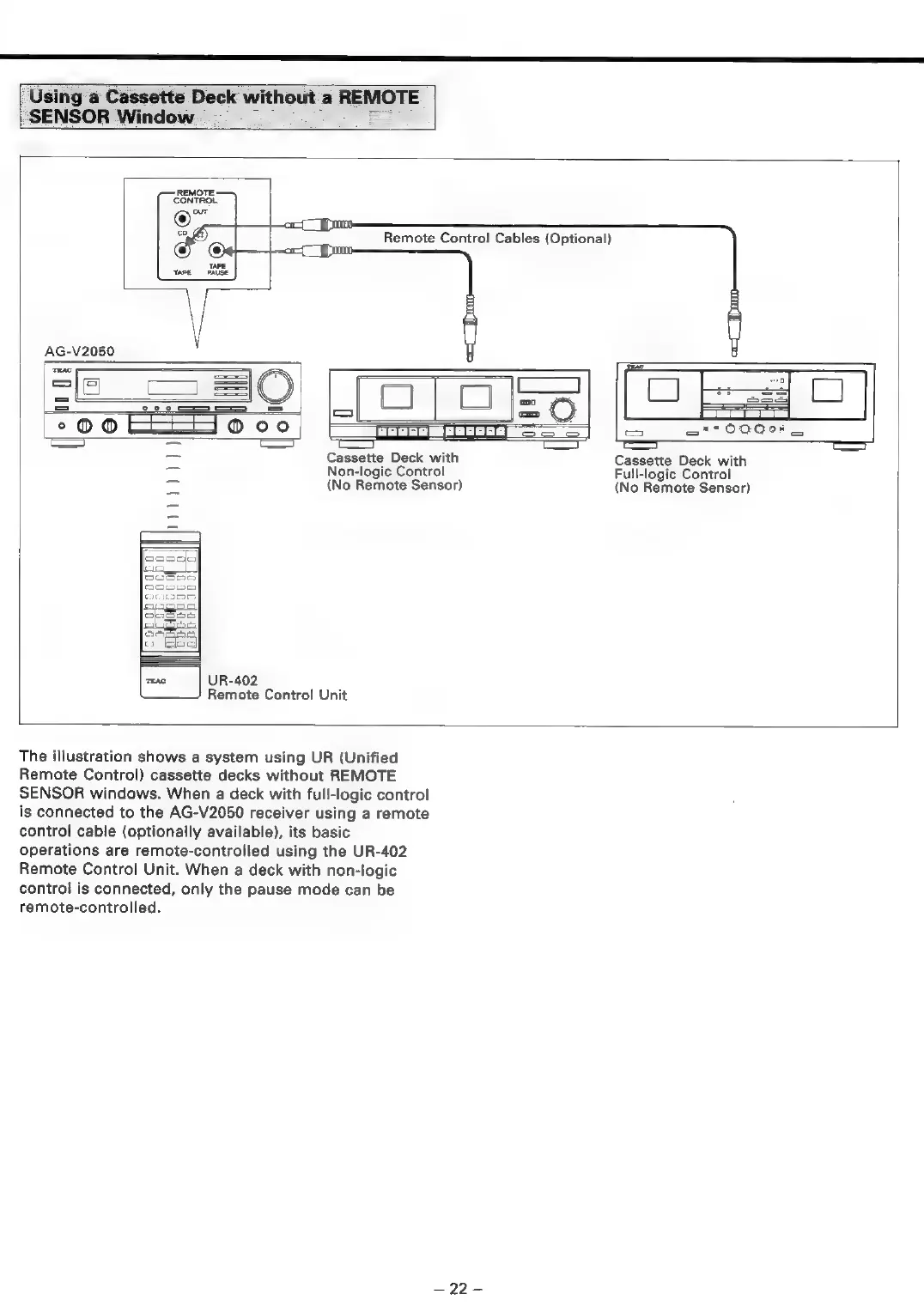 Teac AG-V2050 - Using a Cassette Deck Without a REMOTE SENSOR Window