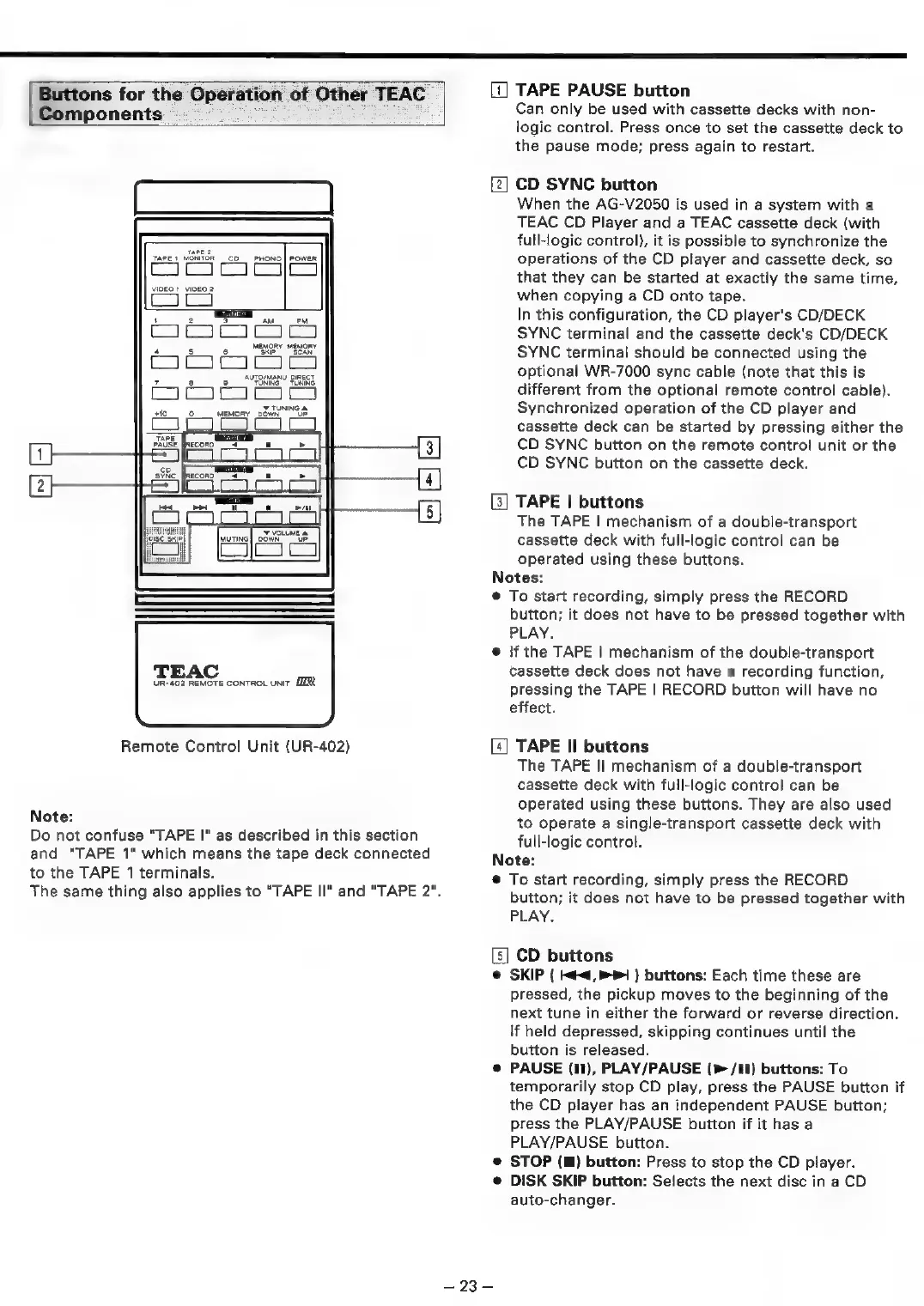 Teac AG-V2050 - Buttons for the Operation of Other TEAC Components