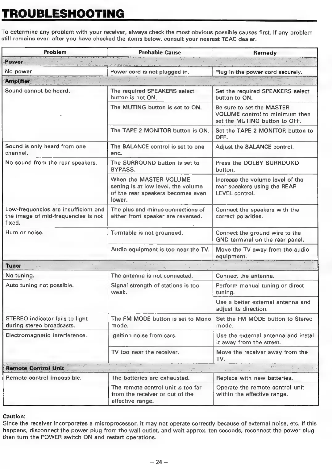 Teac AG-V2050 - Troubleshooting