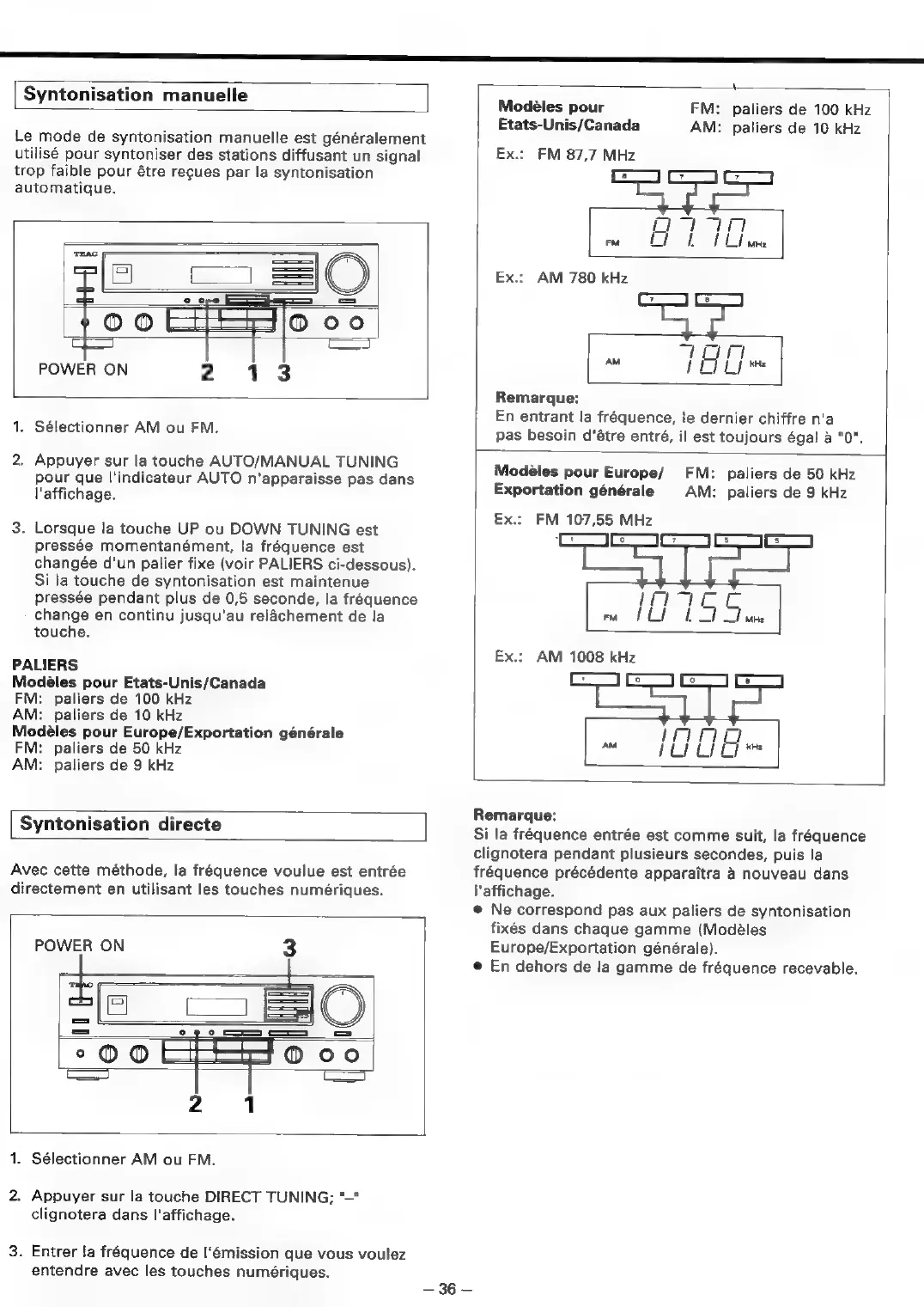 Teac AG-V2050 - Syntonisation Manuelle; Syntonisation Directe