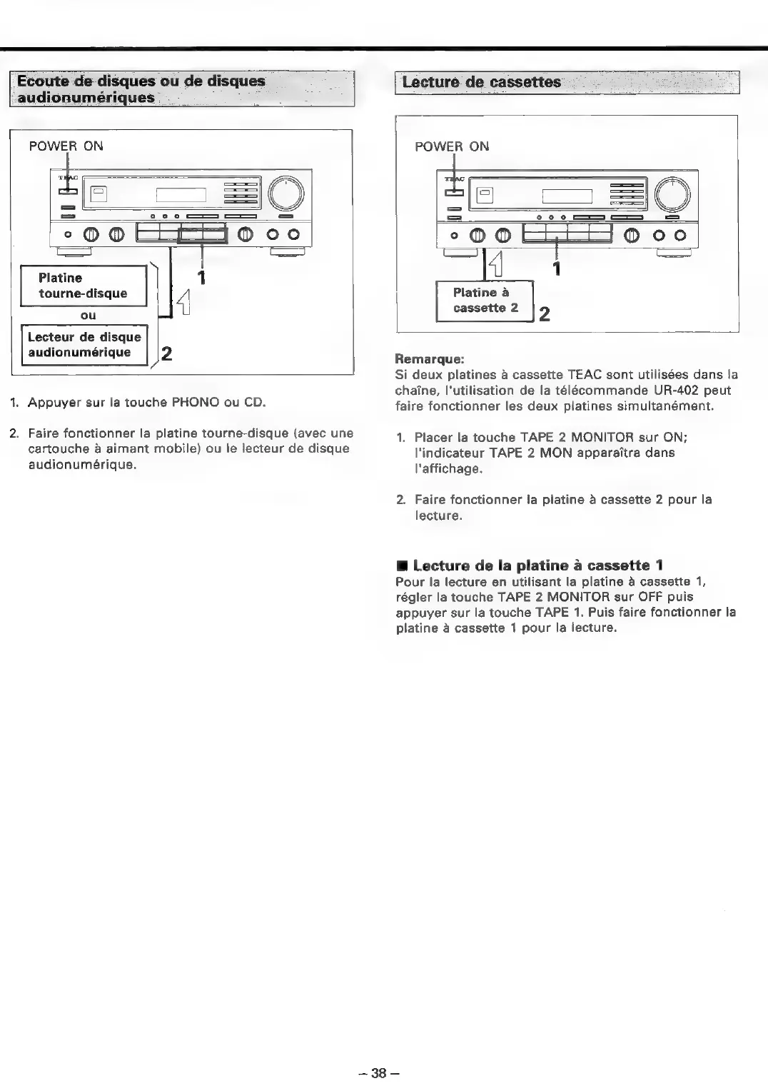 Teac AG-V2050 - Ecoute de Disques ou de Disques; Lecture de Cassettes