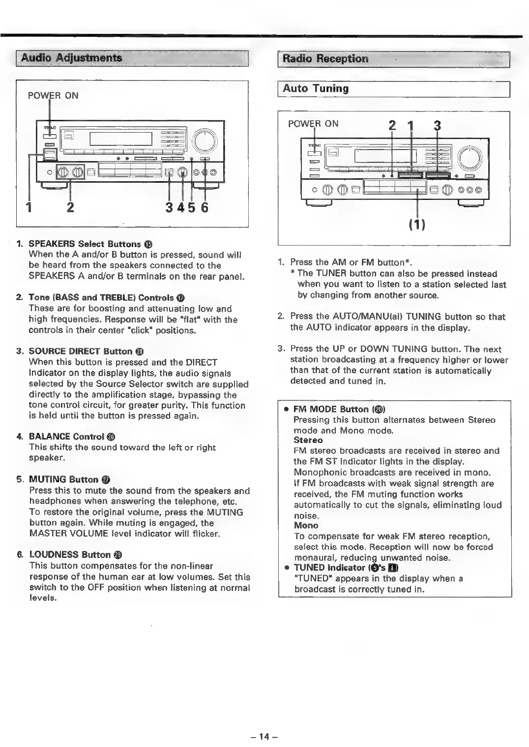 Teac AG-V3020 - Audio Adjustments; Speaker Select Buttons; Tone Controls and Balance; Radio Reception