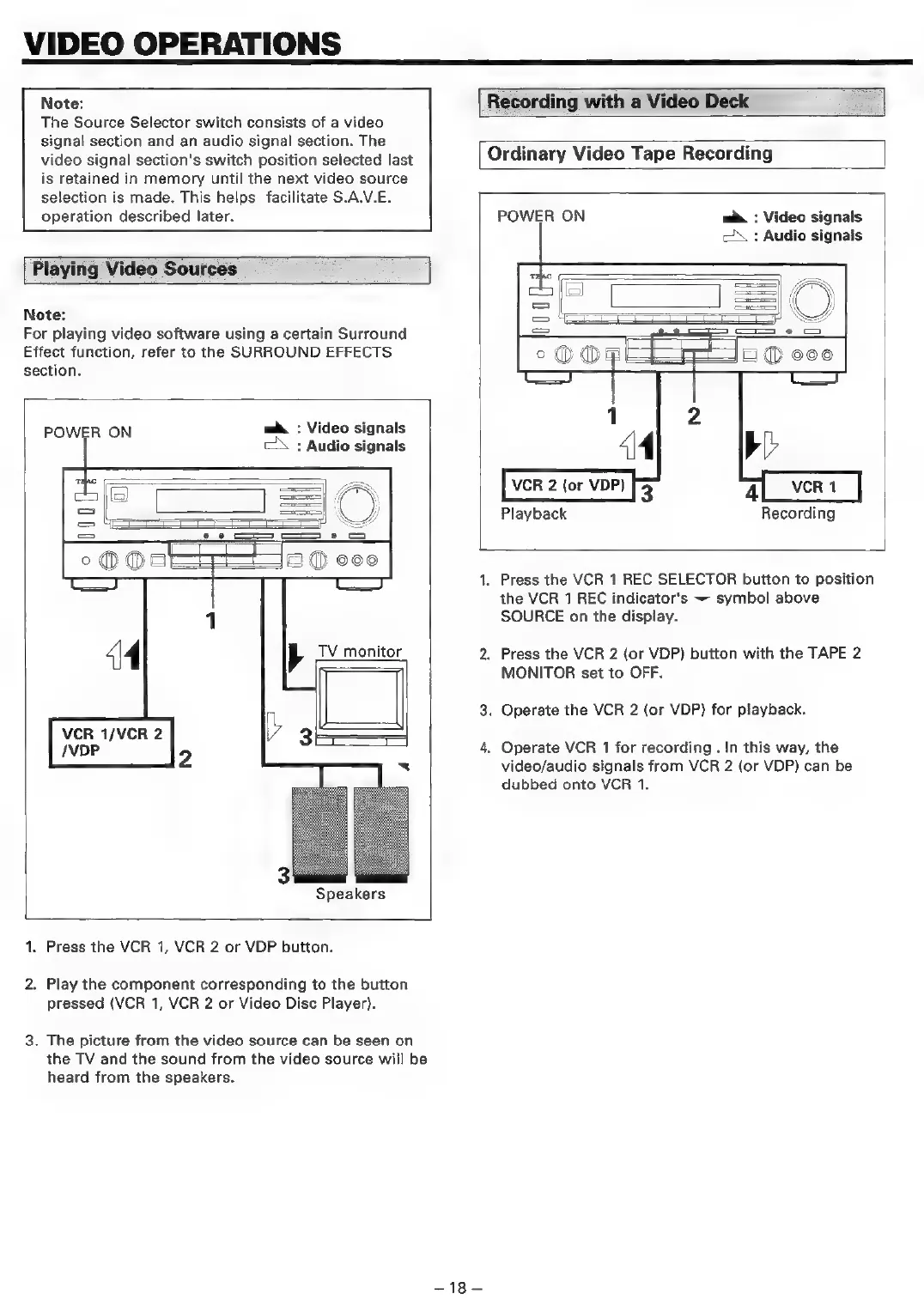 Teac AG-V3020 - Video Operations; Playing Video Sources; Recording with a Video Deck