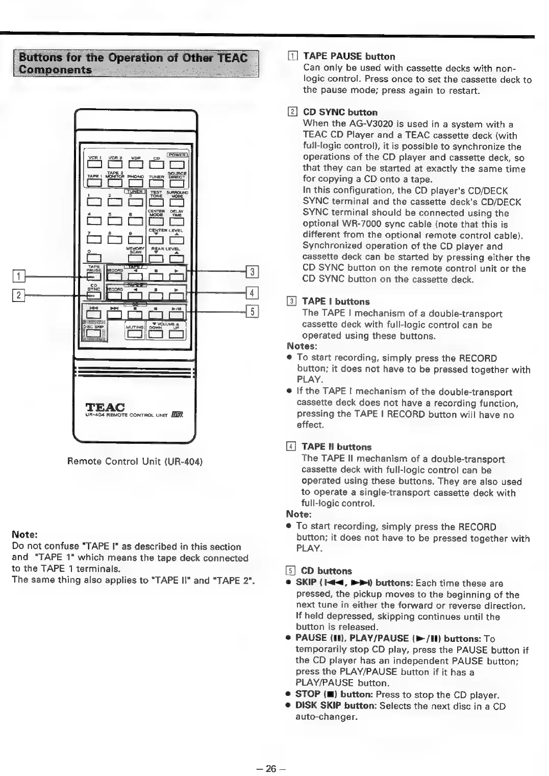 Teac AG-V3020 - Remote Control Functions; Buttons for Other TEAC Components