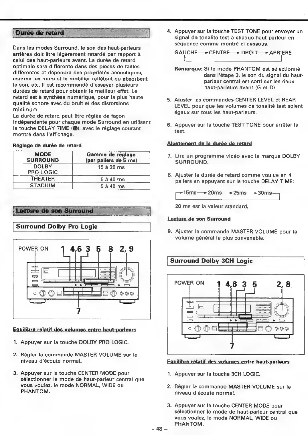 Teac AG-V3020 - Lecture de Son Surround; Surround Dolby Pro Logic; Surround Dolby 3 CH Logic