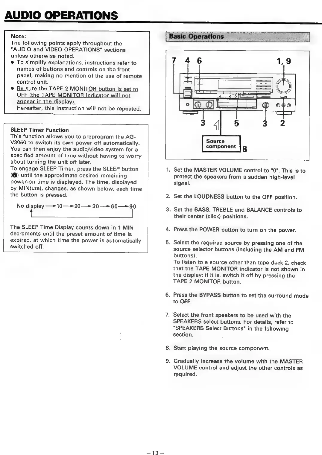 Teac AG-V3050 - AUDIO OPERATIONS; Basic Operation and Setup