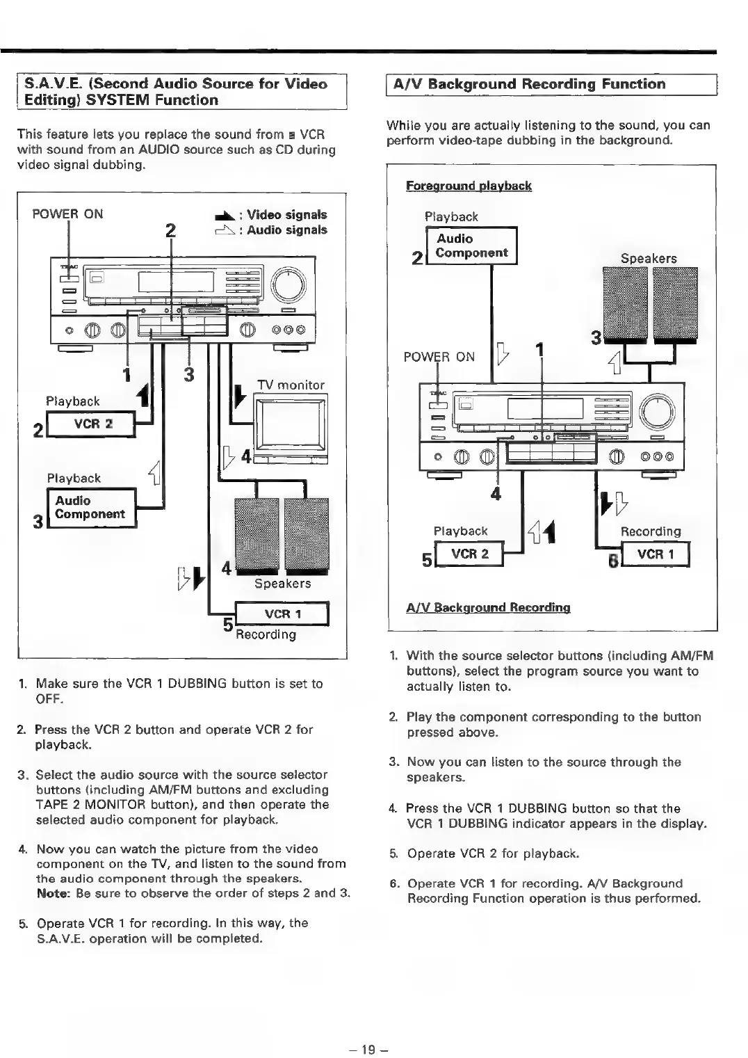 Teac AG-V3050 - Second Audio Source for Video Editing) SYSTEM Function; A;V Background Recording Function