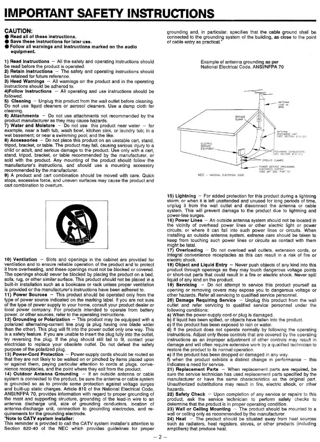 Teac AG-V3050 - IMPORTANT SAFETY INSTRUCTIONS; General Handling and Environment Safety; Electrical Safety and Power Precautions; Servicing and Maintenance Safety