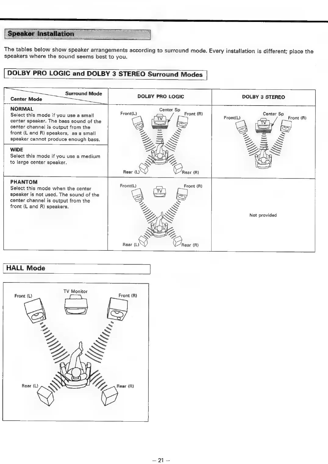 Teac AG-V3050 - SURROUND SOUND SETUP; Speaker Installation Guidelines