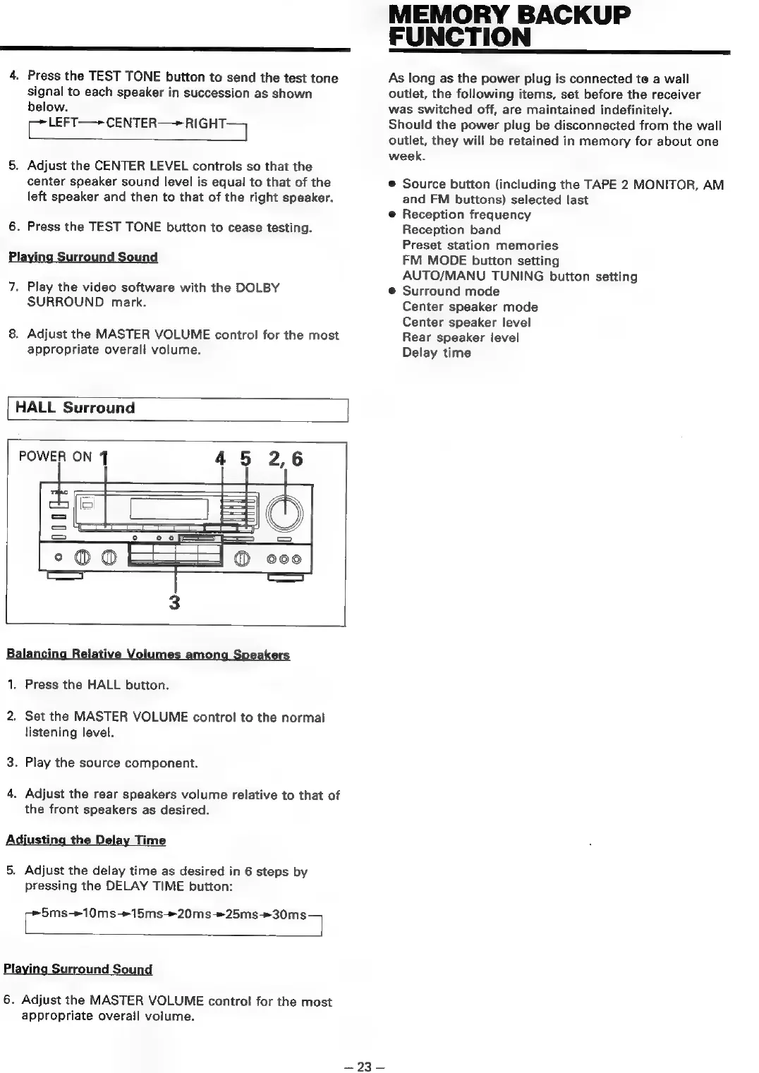Teac AG-V3050 - HALL Surround; Memory Backup Function