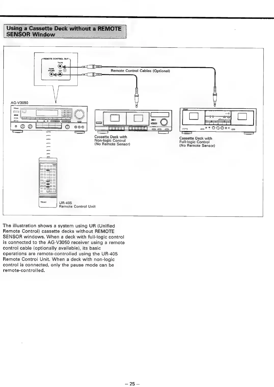 Teac AG-V3050 - Using a Cassette Deck Without a REMOTE SENSOR Window