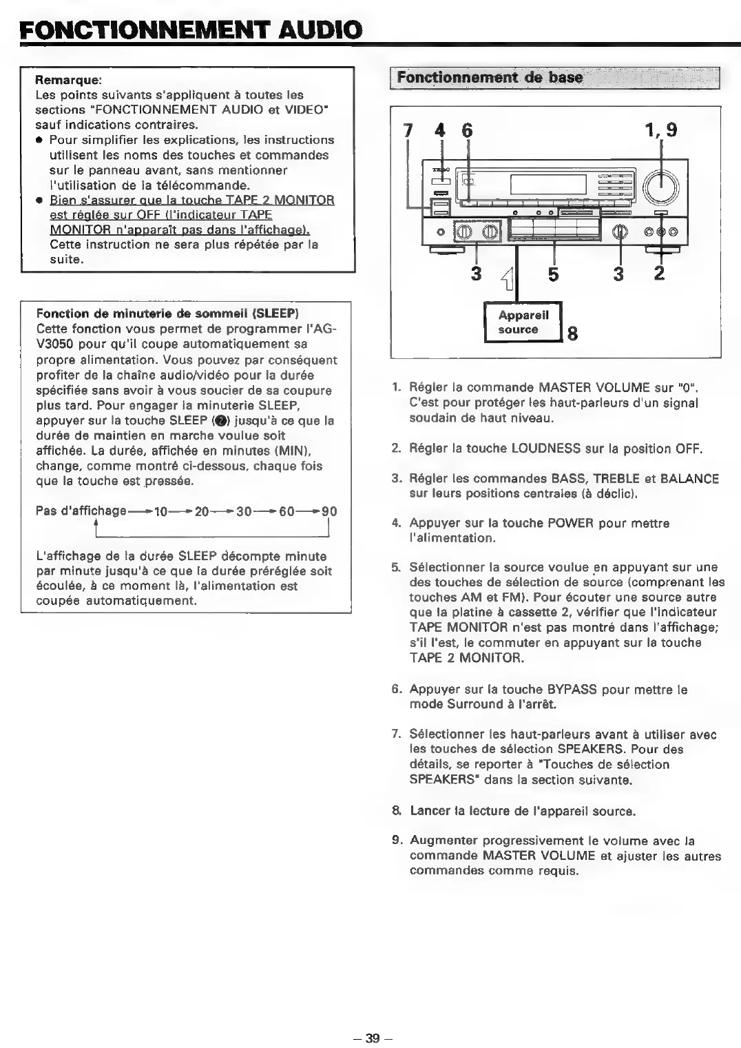 Teac AG-V3050 - Fonctionnement Audio; Fonctionnement de Base