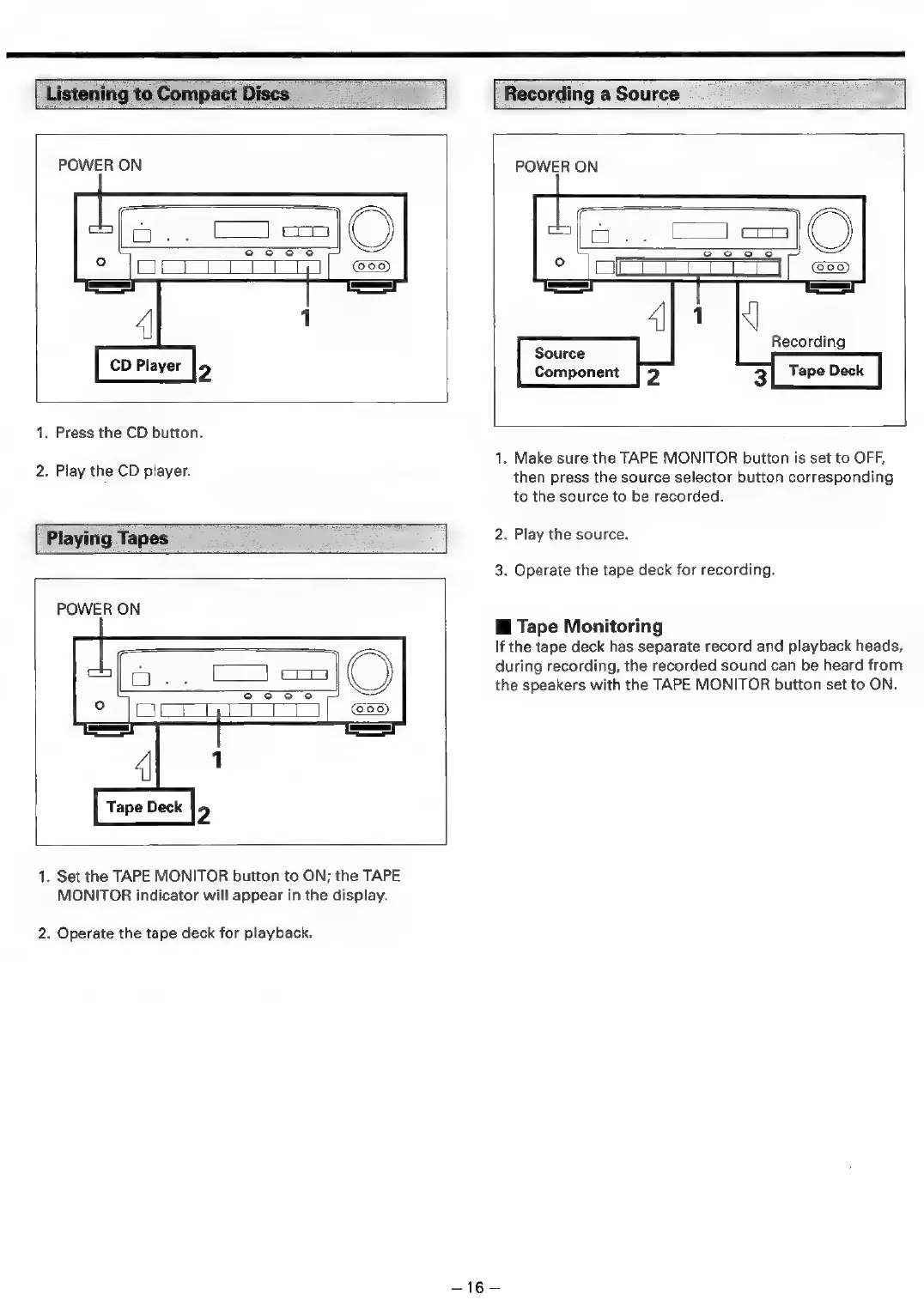 Teac AG-V4200 - Listening to Compact Discs; Playing Tapes; Recording a Source; Tape Monitoring