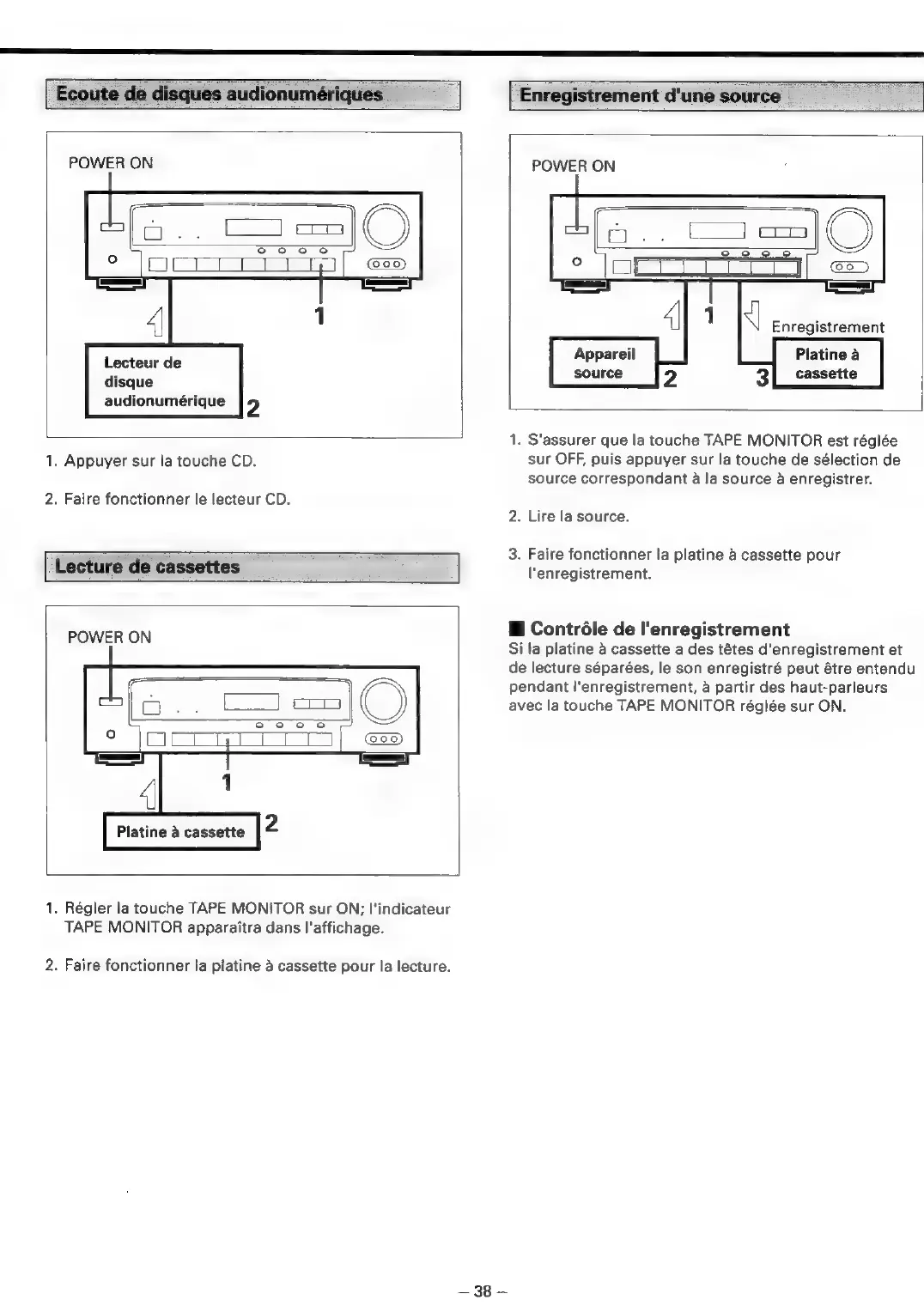 Teac AG-V4200 - Ecoute de Disques Audionumériques; Lecture de Cassettes; Enregistrement Dune Source