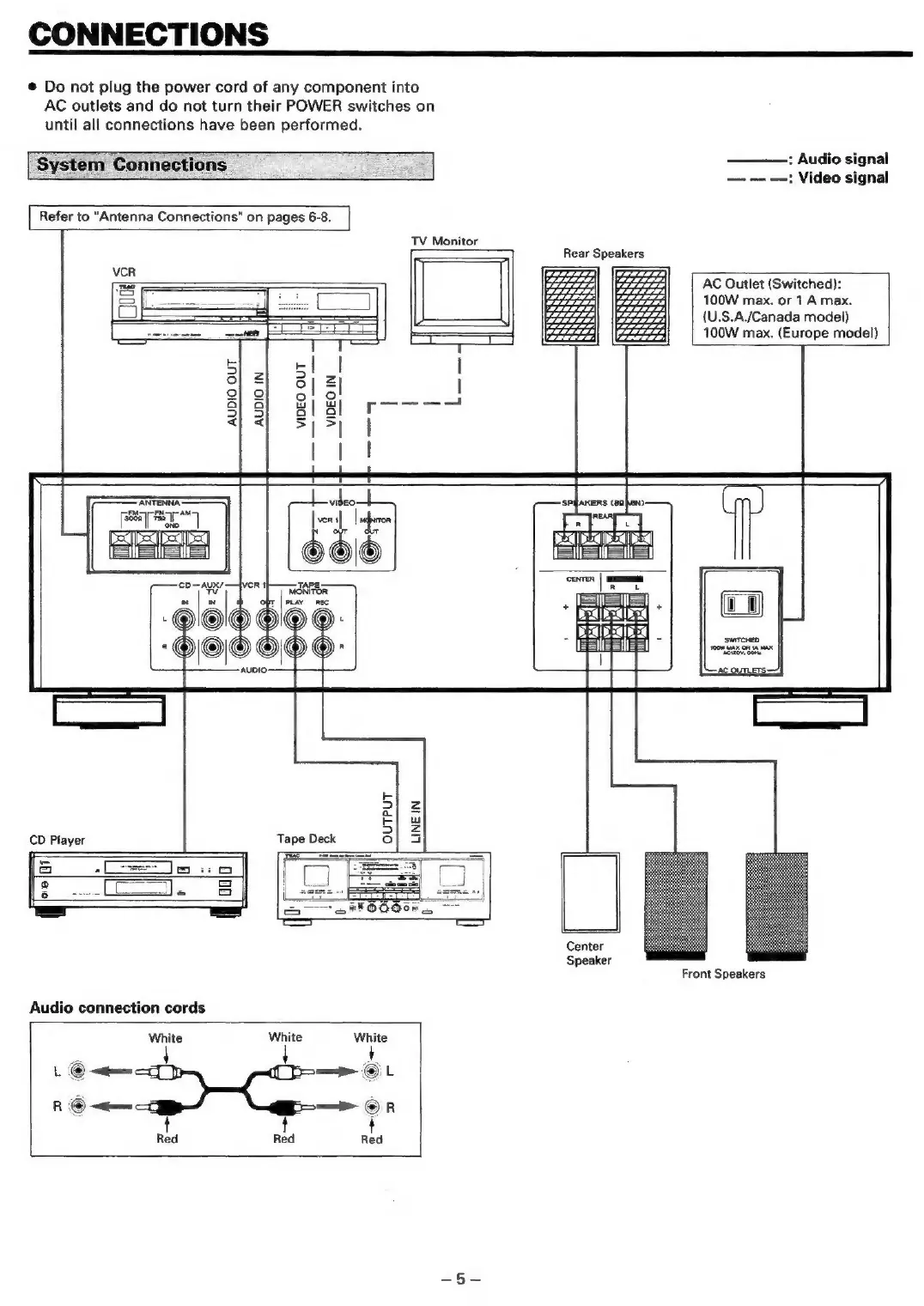 Teac AG-V4200 - Connections; System Connections; VCR 2 INPUT Jacks; Antenna Connections