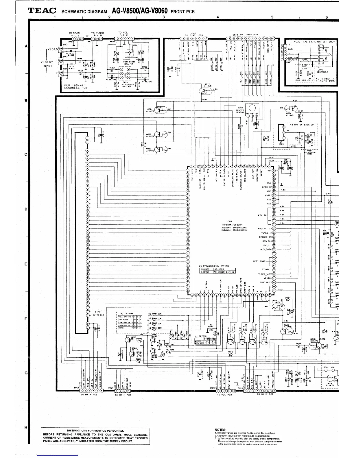 Teac AG-V8060 - TEAC Schematic Diagram AG-V8500;AG-V8060 Front PCB