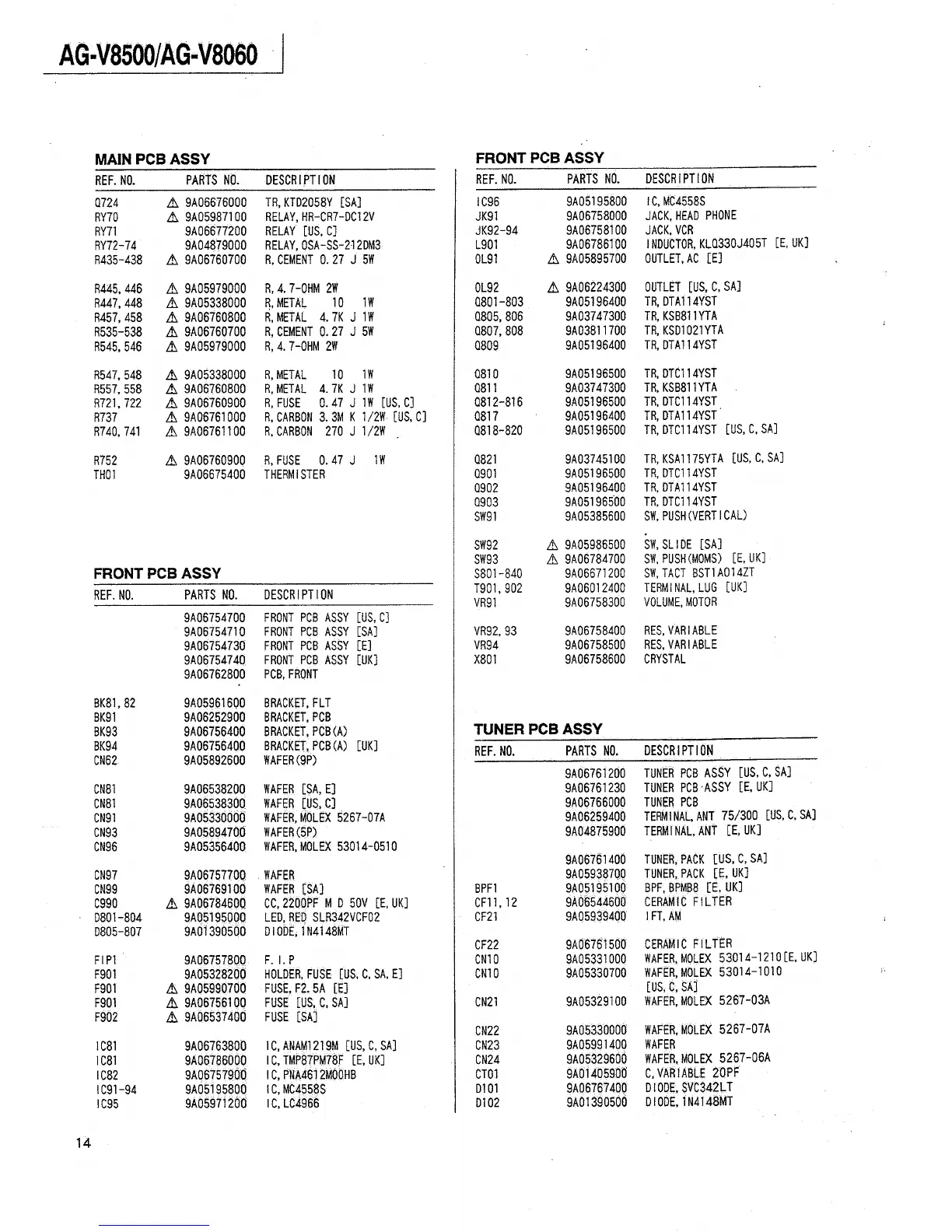 Teac AG-V8060 - Front PCB Assy; Tuner PCB Assy