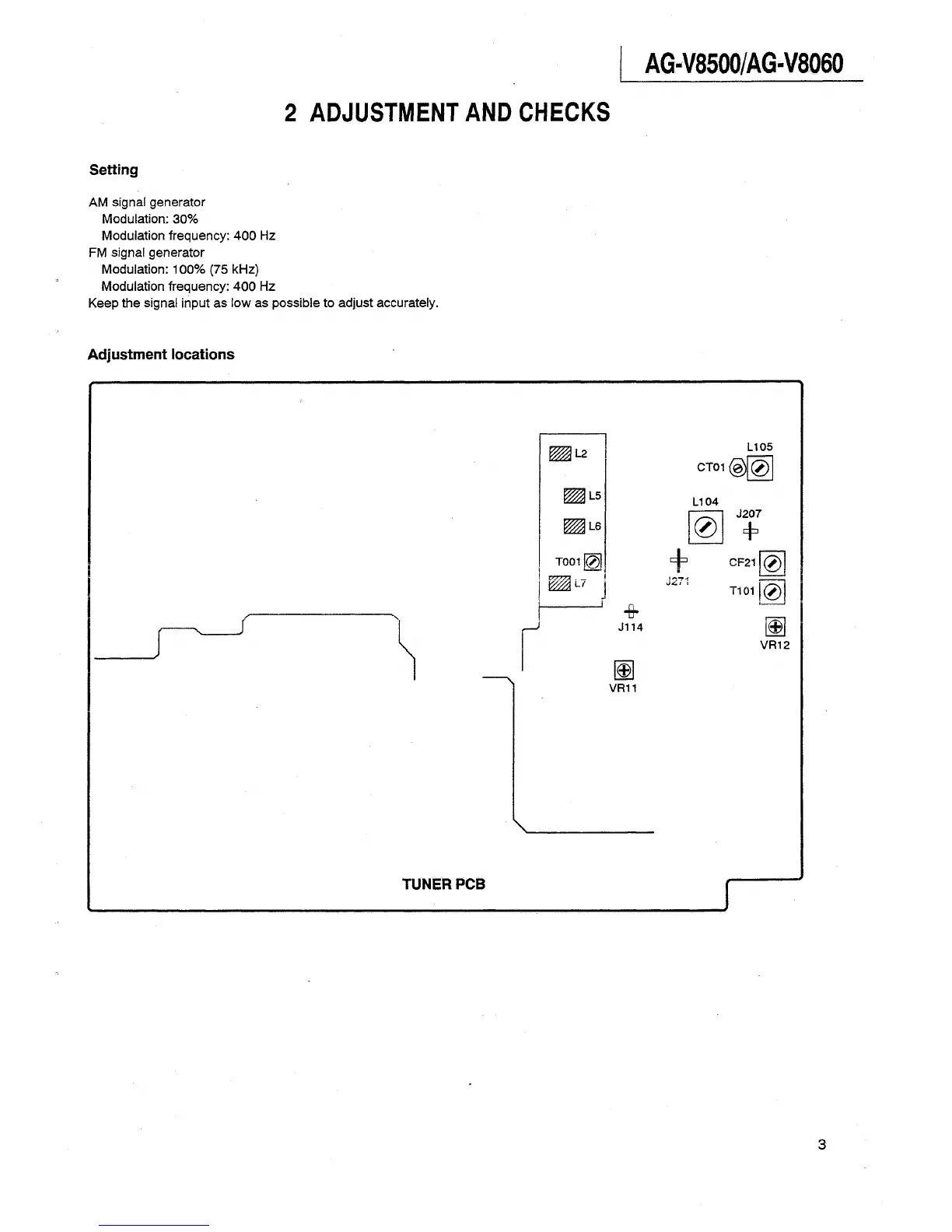 Teac AG-V8500 - Adjustment and Checks Procedures; Signal Generator Setup for Adjustments; Adjustment Location Diagrams